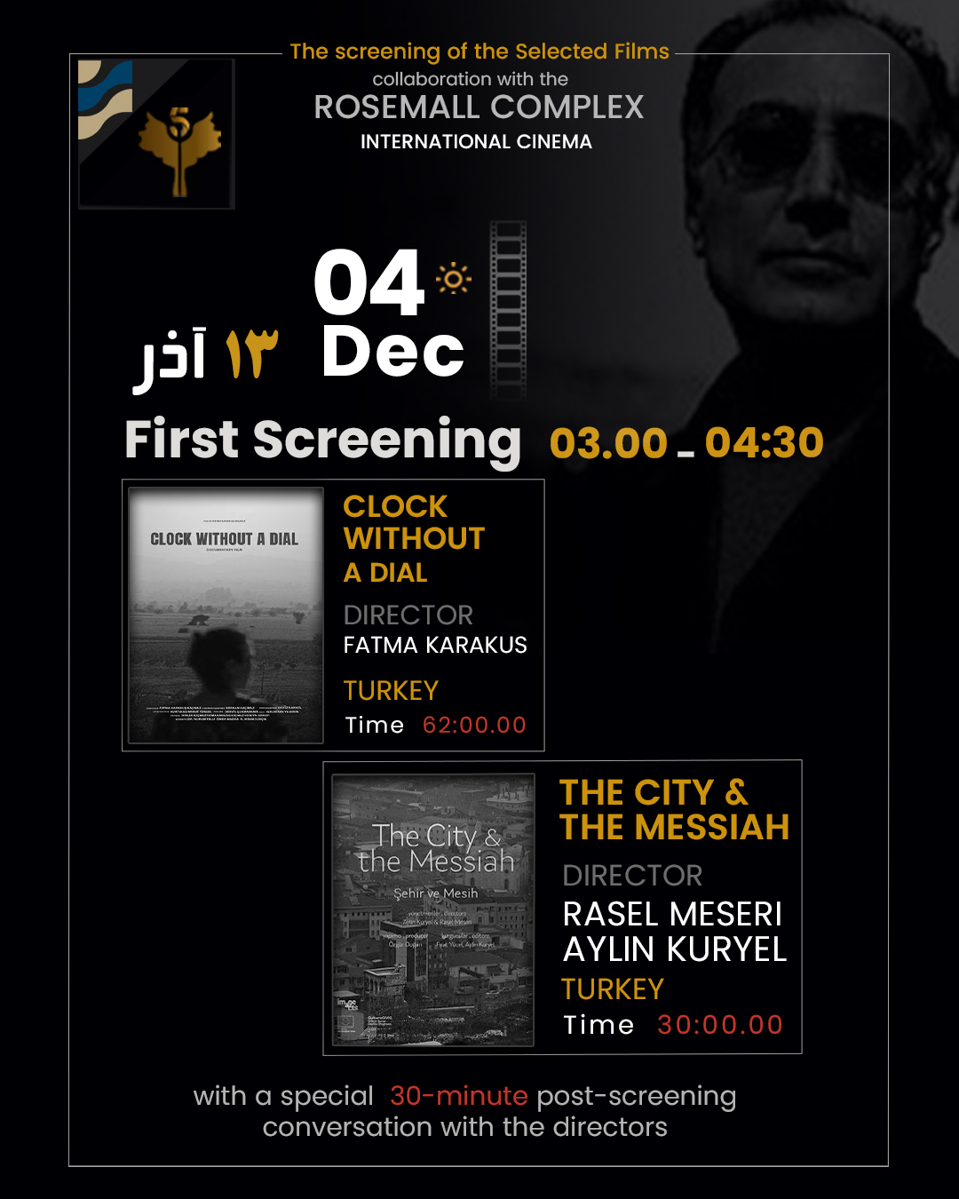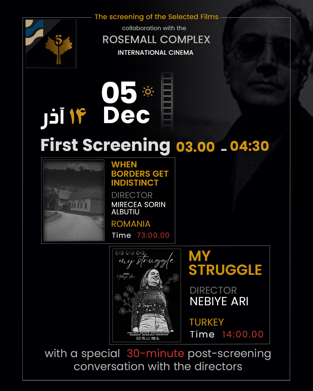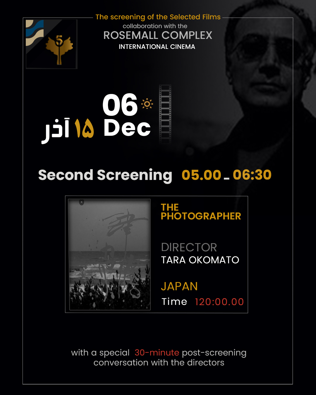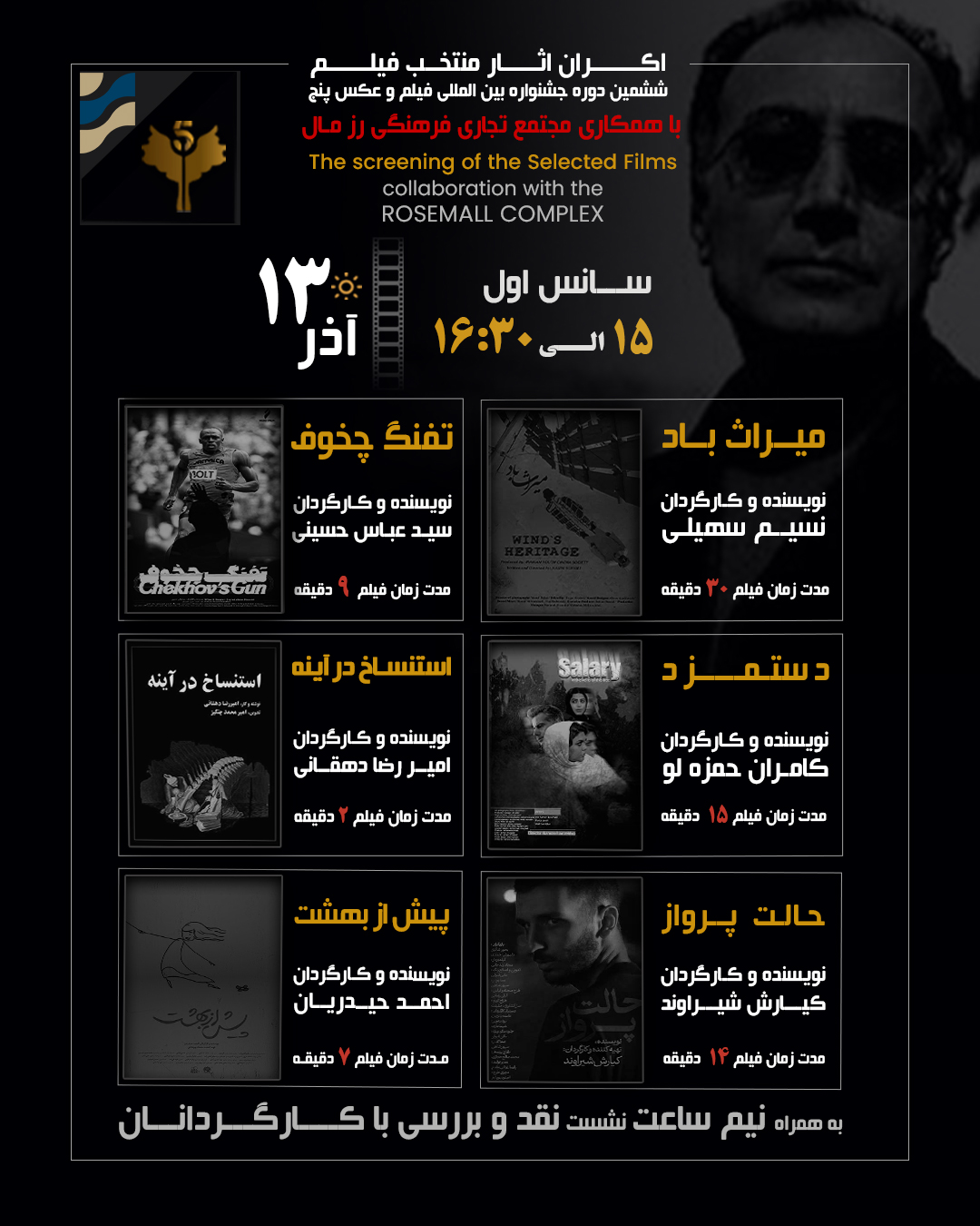 The 6th International 5 Film and Photo Festival – Abbas Kiarostami will be held from December 5 to December 9 2025 at the Rozmall Cinema Complex, in collaboration with the RozmallCultural, Commercial, and Sports Center.
